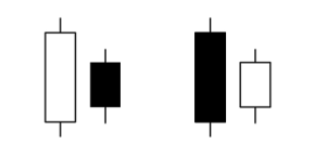 2つ目のローソク足が前のローソク足の実体の中でおさまっているもので、相場のそれまでの流れが変わりやすいパターンです。